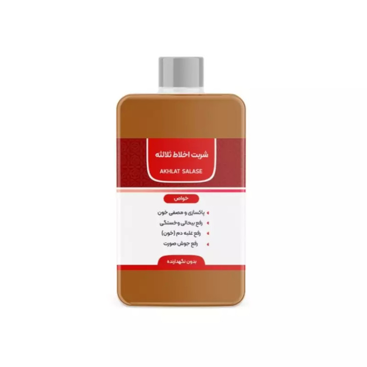 شربت اخلاط ثلاثه مصفای خون یک محصول گیاهی است که از ترکیب عصاره گیاه شاهتره عسل و ... تهیه شده است طبق تحقیقات انجام شده گیاه شاهتره دارای قدرت بالایی در تقویت کبد و افزایش توانایی آن جهت دفع سموم را دارا می باشد و به همین دلیل از گذشته به عنوان تصفیه کننده خون شفاف کننده پوست و از بین برنده لک و جوش مورد استفاده قرار می گرفته است قدرت صفرا آوری و پاک کنندگی کبد و دستگاه گوارش شاهتره در صورت همراهی با عسل به میزان قابل توجهی افزایش می یابد به همین دلیل در شربت اخلاط ثلاثه از ترکیب این دو به خوبی استفاده شده است. به دلیل اینکه گیاه شاهتره علاوه بر خواص ذکر شده دارای خواص آنتی باکتریال و آنتی فانگال (ضد قارچ) می باشد. شربت اخلاط ثلاثه مصفای خون فاقد هر گونه مواد نگهدارنده شیمیایی می باشد و بنابراین مضرات ناشی از نهاد نگهدارنده از این دارو حذف شده است. موارد مصرف شربت مصفای خون: تصفیه خون و کمک به دفع مواد زائد از بدن مسهل اخلاط ثلاثه علی الخصوص سودا کاهش غلظت خون دافع مره ی صفرا منضج و مسهل